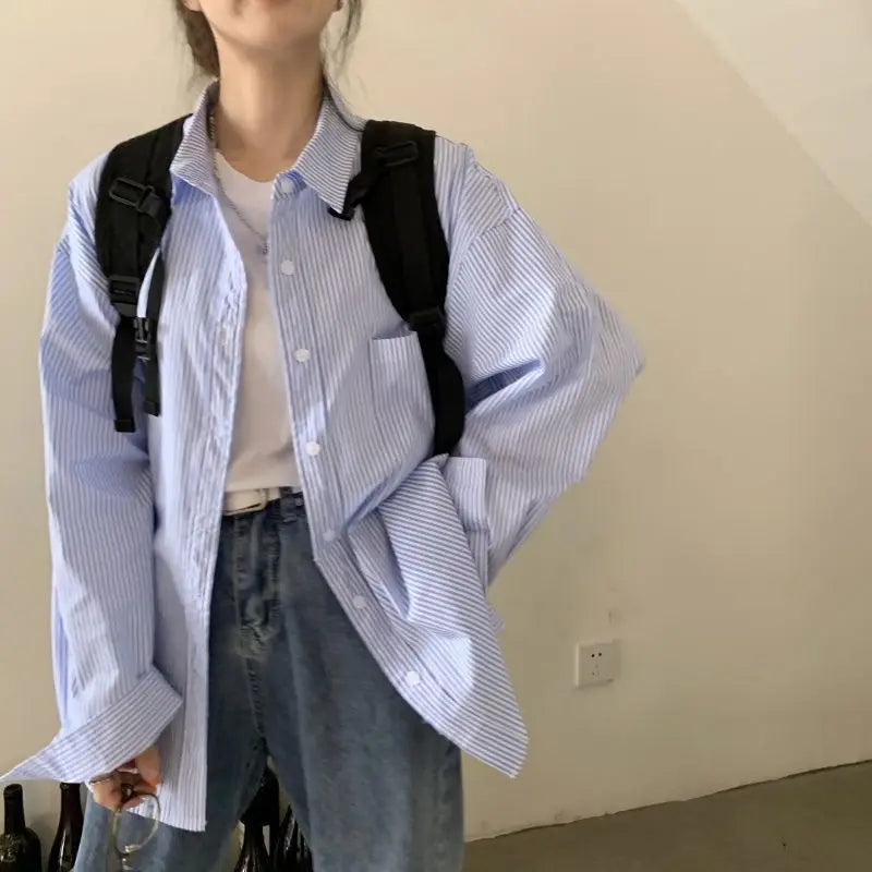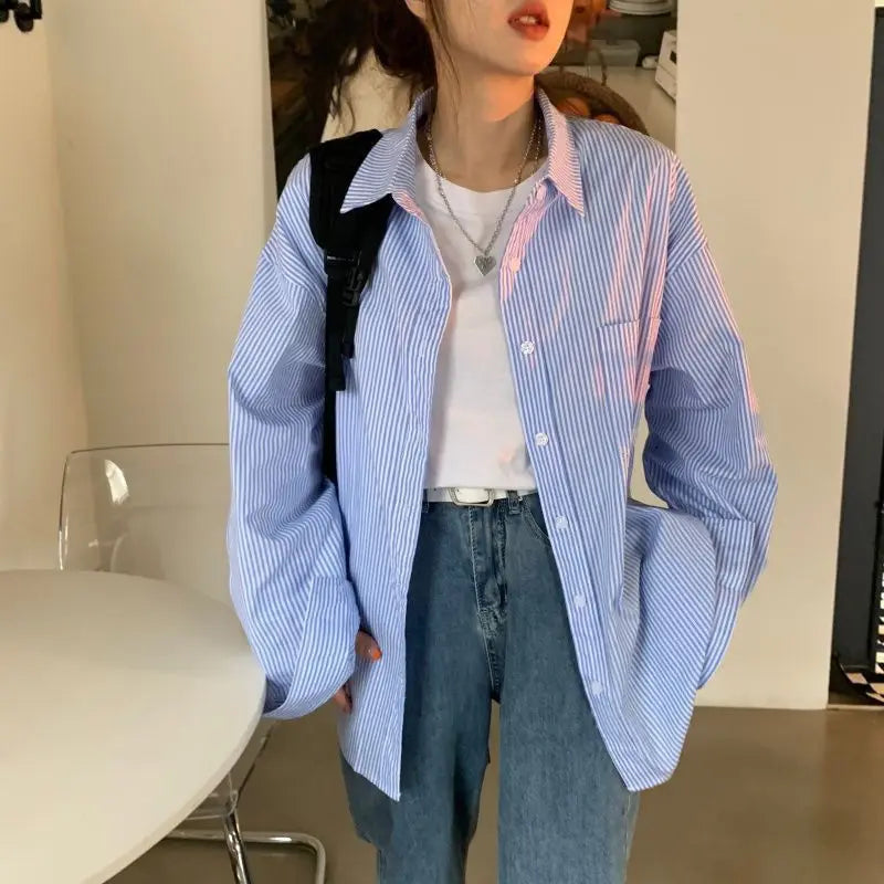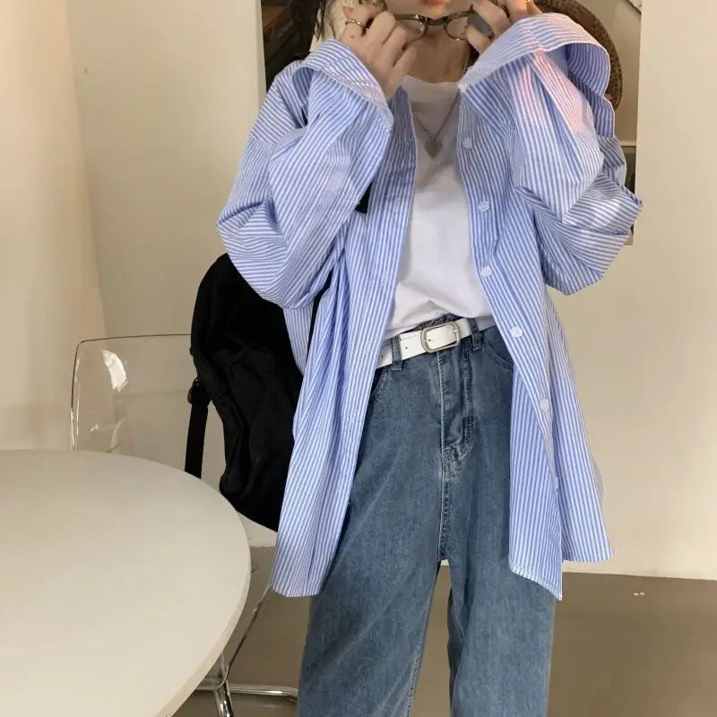 Elva | Damen Oversized Gestreiftes Hemd mit langen Ärmeln | Blau