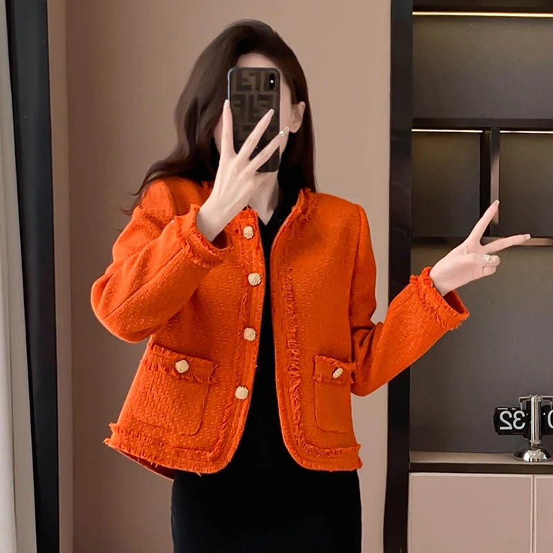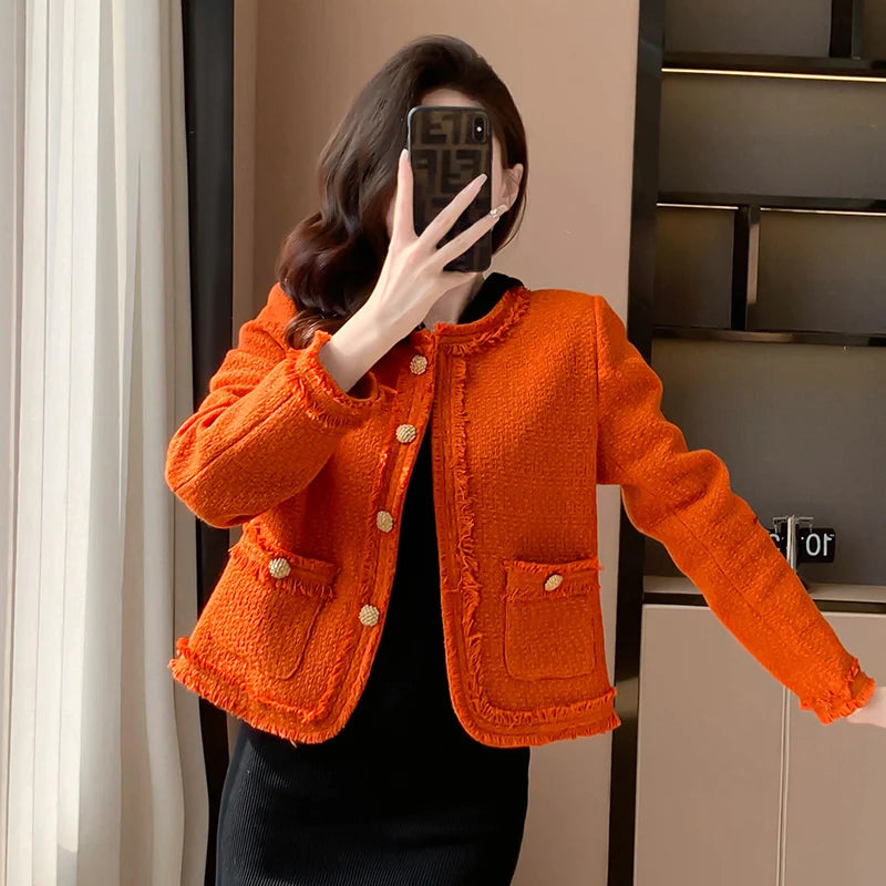 Do you want a stylish and refined coat that instantly elevates your outfit? The Isabella single-row tweed coat for women combines classic charm with a fashionable look. The fine fringes, high-quality finish, and flattering fit ensure you always look stylish. Perfect to wear during spring and autumn, or as a statement piece at a chic occasion.