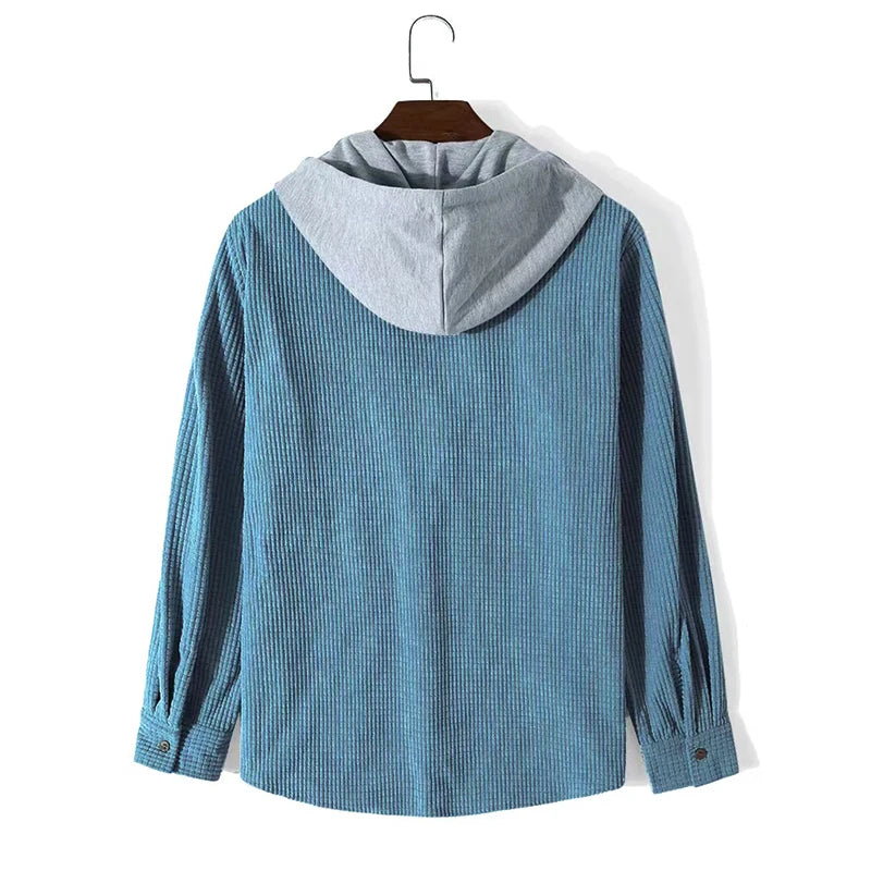Cette veste en velours côtelé pour hommes est le mélange parfait de design classique et de flair moderne, un indispensable de votre garde-robe. La capuche contrastante saisissante apporte une touche unique, tandis que la fermeture à boutons et les manches longues offrent à la fois style et confort. Idéale pour un usage quotidien, les activités de loisirs ou comme vêtement superposé. Cette veste est aussi polyvalente que tendance.